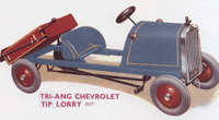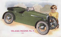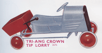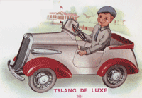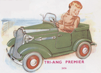 After the war Lines Bros produced their cars under the Tri-ang name, except as previously mentioned in Australia and Canada , where a licensing agreement meant Cyclops and Thistle could build the identical cars for their own markets. Because of the practice of building cars in various locations, there are some differences between the cars, and a Duke car from Canada is not the same as one built in South Africa . The Triang Florida built in the UK is identical to the Tornado sold in South Africa, and we believe the cars were either pressed in the UK and painted /assembled in the various countries of destination, or imported as complete units. |