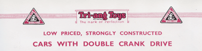 Whilst the Tri-ang factory was still under fire from the enemy at the end of WW II, the Lines Bros had sufficient confidence in the future to write to their dealers overseas and suggest they might like to place Toys orders with them, for delivery they knew not when! That their confidence was shared by the dealers is not in doubt, for the Lines Bros received a splendid response! Within two days of V - day, Tri-ang was once again making toys and the 1947 catalogue was a measure of the really big task achieved in a little under two years.