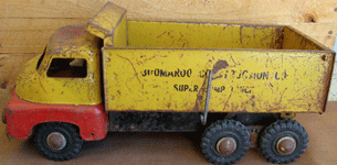 The Boomaroo tow truck, this one was catalogues in 1947, is very hard to get in good condition as most boomaroos are, because most Aussie kids played outside in backyards or at the beach. |