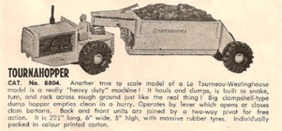 In the 50ties of the last century Boomaroo introduced a range of earthmoving toys. They are scale copies of the famous R.G.Le Tourneau Inc. company.