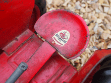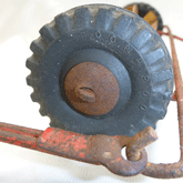 This one is different from all the rest, it is a "Metal and Ashes" tipper, I am 100% certain that it is all original. This machine has a different grill, which i have only ever seen one of,the cab is a different shape with no center pillar, Boomaroo decal on the bonnet is identical to other boomaroo decals.the wheels appear to be from the late 1950's to the late 1960's. will send separate picture for you.the tray being identical to 1940's to 50's Boomaroo's notice the spring loaded mechanism to raise the tray. |