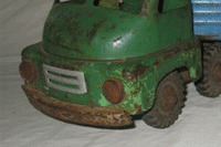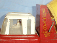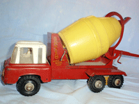 This cement truck was probably made in the 1965 era, this model shows flared guards and a different grill to the early 1960 model. |