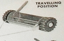 No. 8812 Rotary scoop This is towed behind the tractor and moving the lever upright and engaging the catch it will scoop up the sand and soil. Lever can then be moved back and it is in travailing position. On moving the lever forward it tips the load and also scrapes it level.