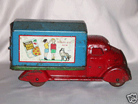 Collector Keith Morris from Austrlaia wrote me this: I thought you would like to see this photo of a Boomaroo truck and tram. They are in my toy collection. I used to have a Boomaroo train and tram as a child, bought for 2/6 each from the department store ‘C J Coles’ in Sydney (Australia) in the mid fifties.