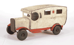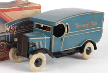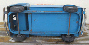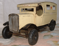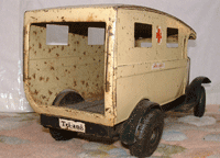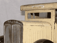 This Motor Delivery Van is exactly to same as the one Brian found in his attic. except the headlights . I'm pretty sure Brian's truck was made in South Africa. (1939 - 1947), although there is a possibility an English family emigrated to S.A. and took the toy with them. |