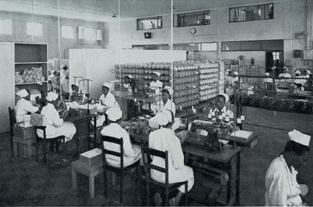 The Welfare section was built to Tri-ang's own specifications and with the help of a Durban Architect. Director Walter Lines wanted the best in South Africa. He wanted the factory and their workpeople to be spotlessly clean. All their Zula "boys" wear special blue overalls, two sets provided and washed regularly. The Zulu girls in the Leicester Road factory were in white overalls and they took pride in "super whiteness". All three factories were completely hygienic and their products "match up". |