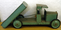 The Tipping lorry was designed on the same lines as the real thing. Body tipping was operated by lever from the driving cab. As said all models were stove enamelled red.
