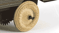 In 1938 the metal wheels were replaced by steel disc wheels and rubber tyres. |