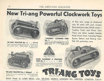 The Tank range had two models: a "Whippet"climbing Tank no.1 and a "Tiger" climbing & fighting tank no.2